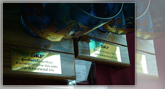 On February 25th, 2008, Hung Seng Huat Engineering Product Co.,Ltd. was double - awarded as SKF Thailand's Best Valued Partner and Best Certified Maintenance Partner. The rewards were presented to us by SKF Thailand Managing Director Mr.Pelle Eriksen and General Manager Pitak Dumrongsuthisilp. The awards were the result of our relentless pursuit to give value added to all customers.